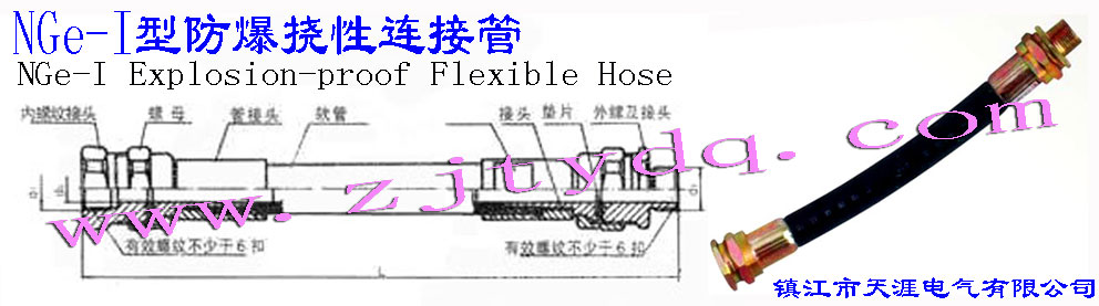 NGe Explosion-proof Flexible Hose is the key component for the explosion-proof electrics engineer.The products are widely used as the protective conduit of the explosion-proof equipments in the places of explosive Q-2 Zone,such as:explosion-proof electric motors,site equipments or those places where are hard for steel bending.The explosion-proof grade is ExeII.